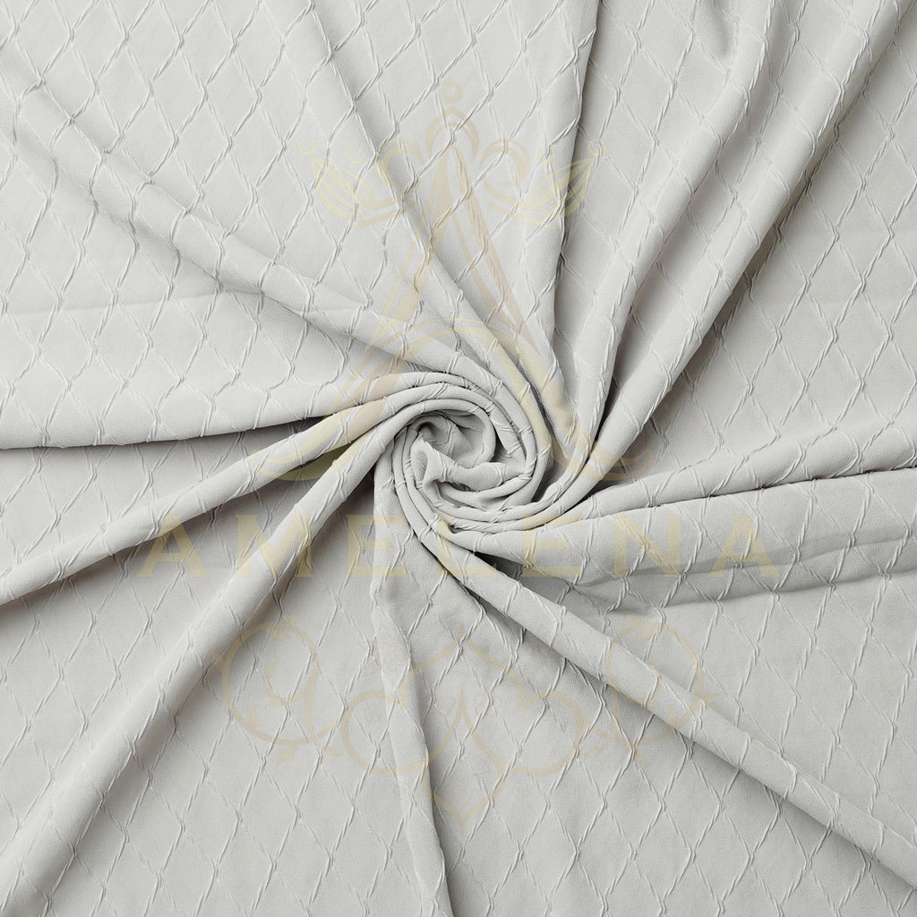 Elevate your everyday elegance with this premium AMELENA georgette‑blend hijab, beautifully crafted with a subtle diamond‑textured design that adds depth and refinement to every look. The fabric offers a soft drape, gentle stretch, and breathable comfort, making it ideal for all‑day wear. Its non‑slip finish ensures your hijab stays perfectly in place—no pins, no fuss.