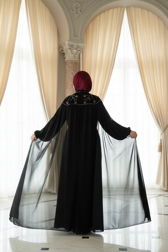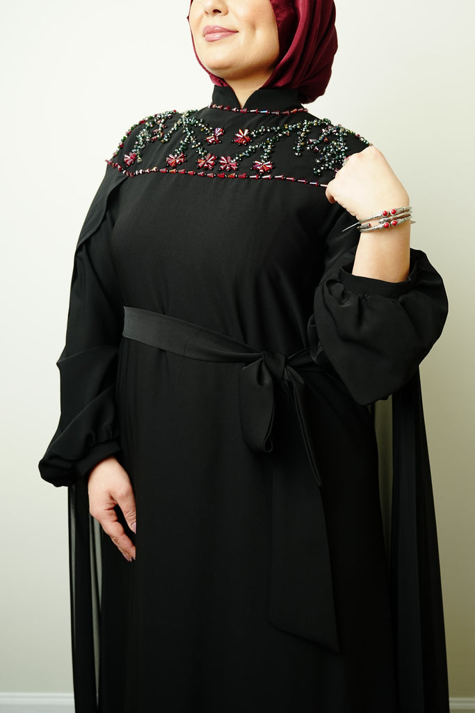 Lightweight, breathable, and fully lined for comfort, this dress offers the ideal blend of luxury and practicality. Its refined embellishments and clean tailoring make it a standout piece in any modest wardrobe.