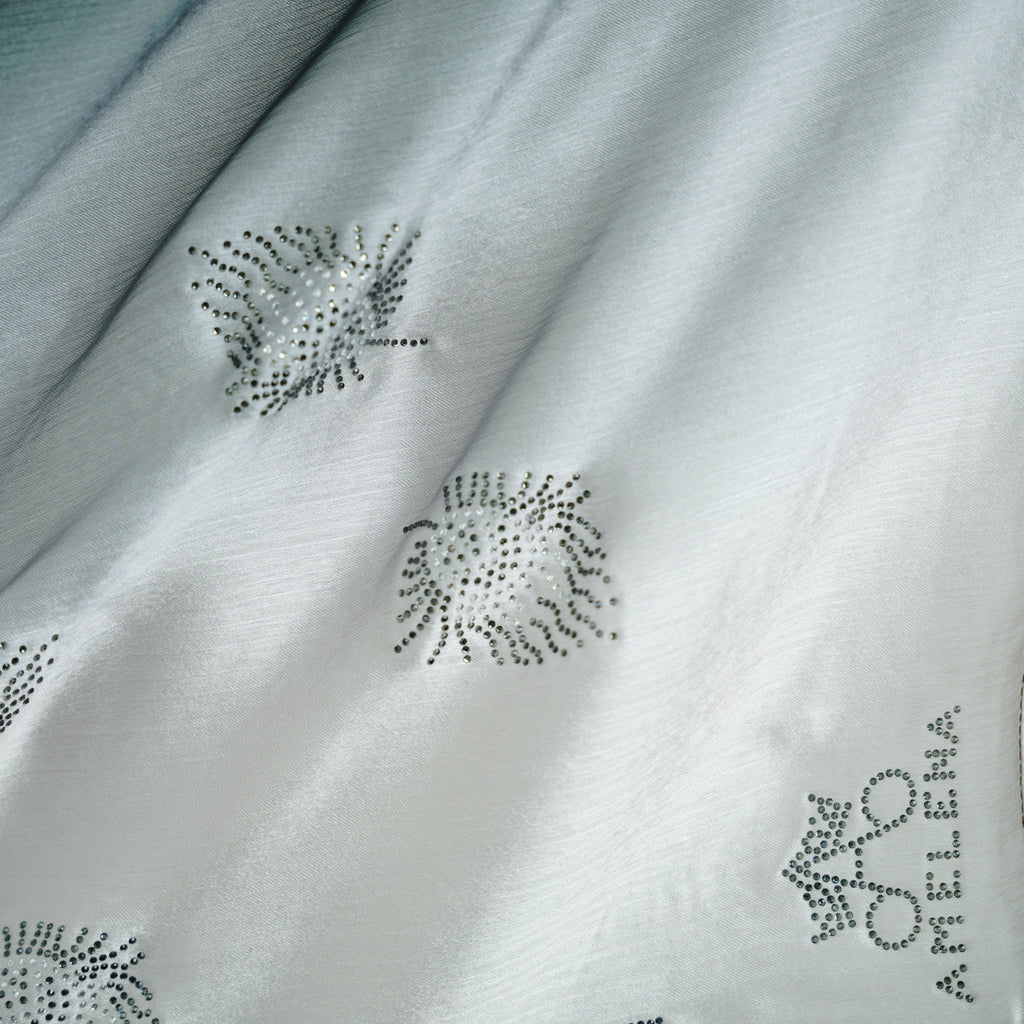 Created from a luxurious silk‑chiffon blend softened with fine cotton, this AMELENA scarf offers an airy, elegant drape. Its ombré hues flow seamlessly from shade to shade, creating a soft gradient that elevates any look. Each piece is exclusively embellished with AMELENA’s signature crystal designs, adding a refined shimmer that feels both modern and timeless.