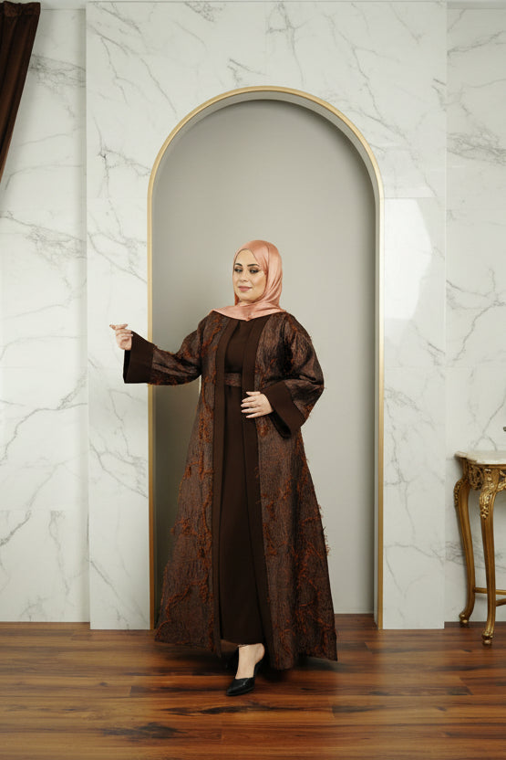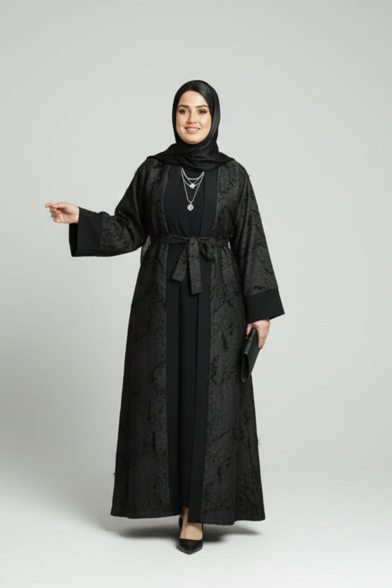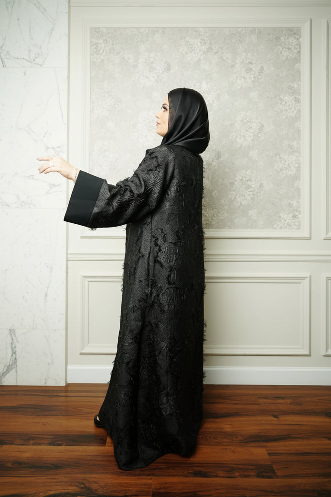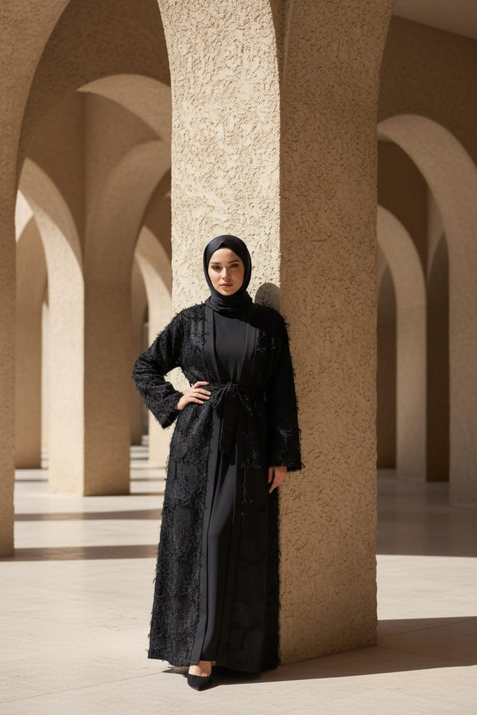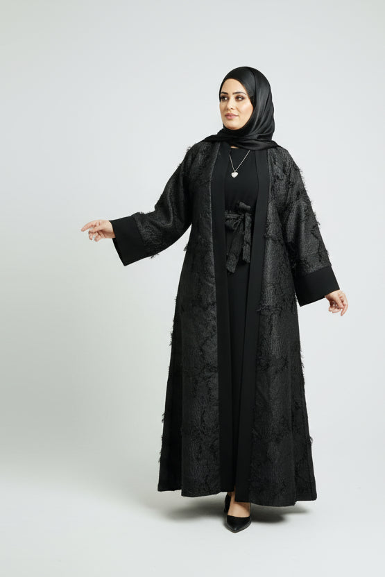 Open Outer Abaya – adorned with a soft feathery texture for an elegant touch